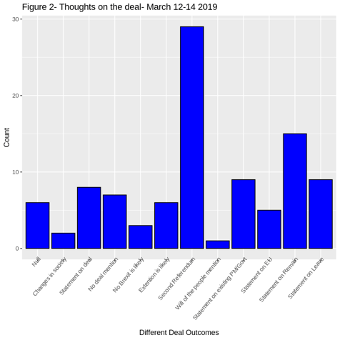 Most likely the salience of the second referendum increased owing to the gridlock in Parliament over the Brexit deal. Lots of tweeters suggested that this was the only way to progress (or regress) from this stage of the Brexit process. Thus, the political crisis in Brexit would seem to have contributed to the popularity of the second referendum in this period.
