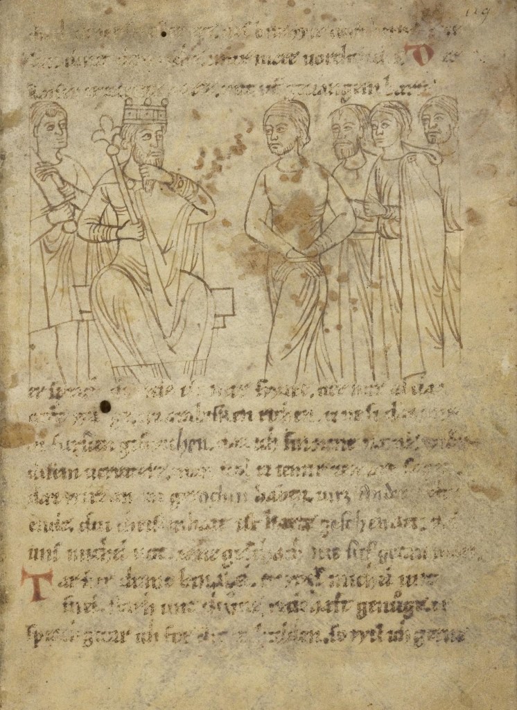Much of this material conforms to one of the cardinal rules of pre-modern storytelling: selective visualization, or rather: choice details pertaining to the appearance of characters tend to be given for a special, thematic reason. Where no such reason existed, the beardedness, or otherwise, of male figures was left to the audience’s (or reader’s) imagination. By contrast, the artists of the miniatures contained in illustrated manuscripts of these same poetic works had no choice but to decide which male figures to beard and which not. The relationship between medieval text and image was very rarely one of straightforward correspondence.